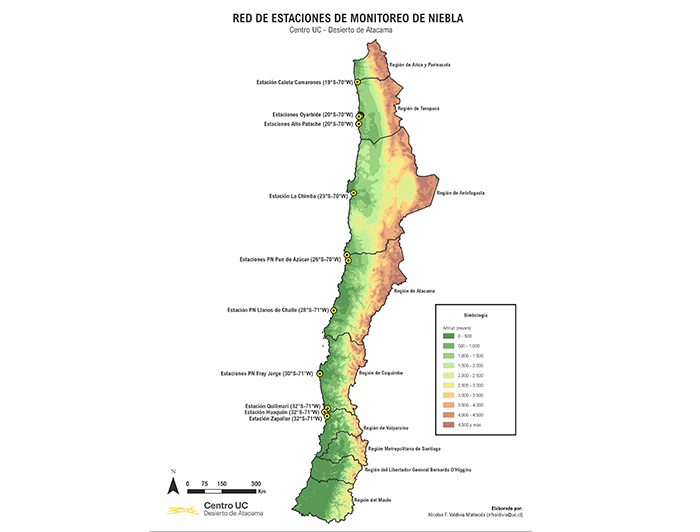 Dada la importancia de esta fuente de agua complementaria para los territorios, el CDA trabaja en un mapa de agua de niebla para todos los territorios del norte y centro de Chile. Como explica su director, el académico del Instituto de Geografía Camilo del Río, “se espera que esté disponible -con acceso abierto- para consultas, tanto para para el aprovechamiento y gestión de esta fuente de agua para el consumo humano, agrícola, ganadero y energético, entre otros; como también para fines científicos: ecología, climatología, meteorología”.